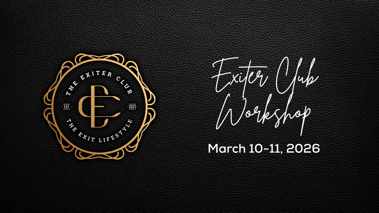 This is our two-day, in-person workshop where you'll dive deep into business strategy, get live insight from XOS™ coaches and guest experts, and connect with Exiter Club members.